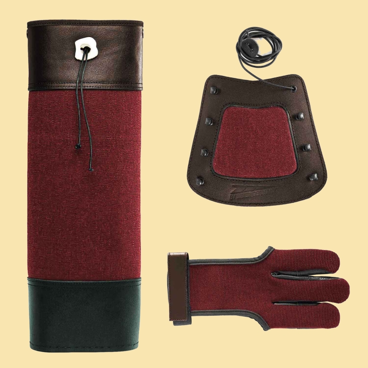 einen Schießhandschuh und einen Rückenköcher.