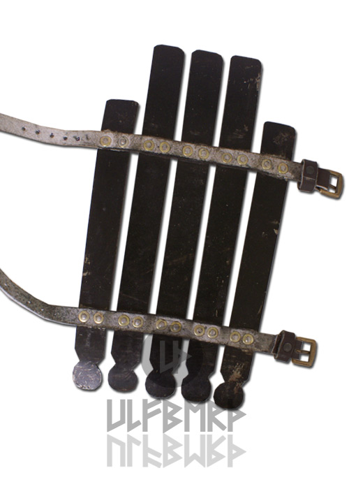 Dieser Wikinger-Armschutz besteht aus fünf gebogenen Stahlstreifen,