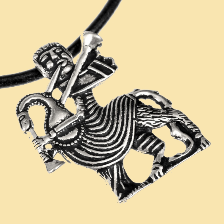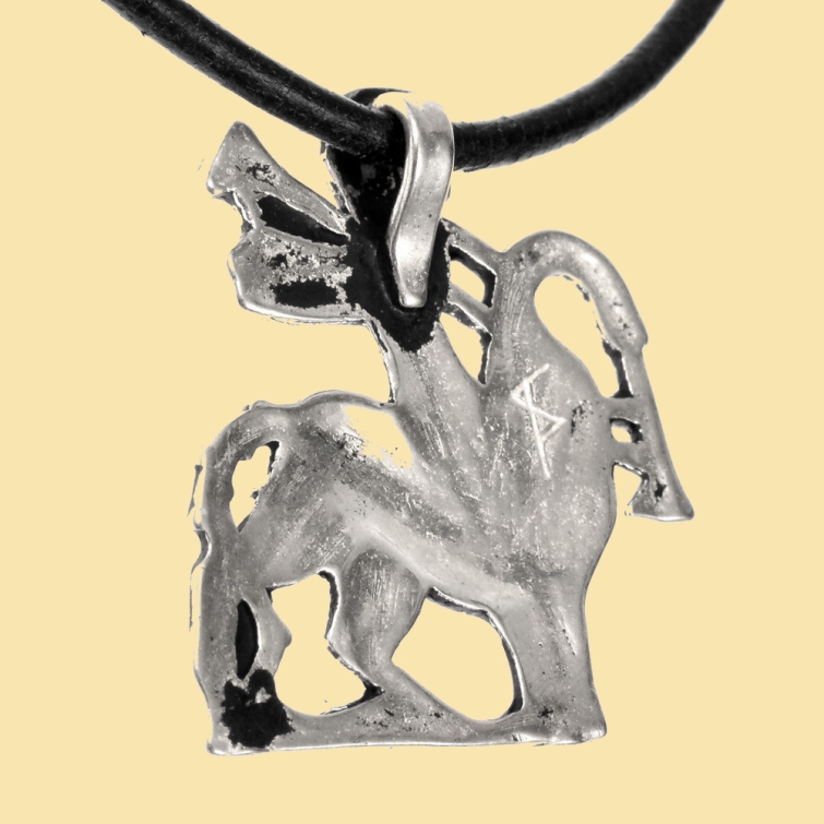 Der Anhänger zeigt eine halb menschliche, halb tierische Kreatur,