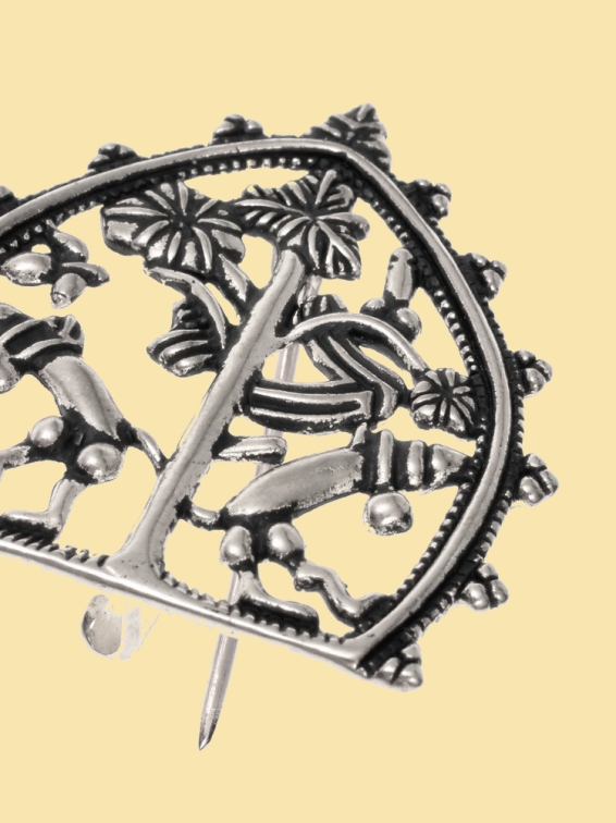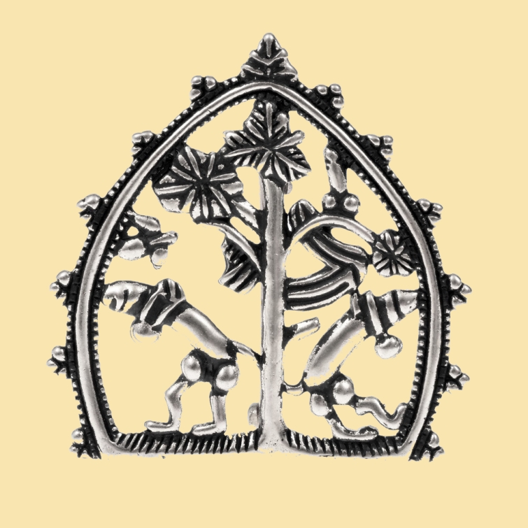 Das Pilgerzeichen ist filigran durchbrochen und zeigt zwei inmitten von Gewächsen