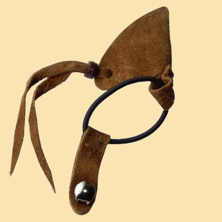 Hilfsmittel zum Befestigen der Sehne am ungespannten Bogen.