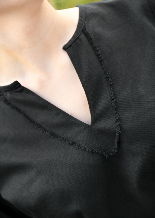 Die 3/4 Ärmel sind am Saum mit einem Tunnelzug versehen,