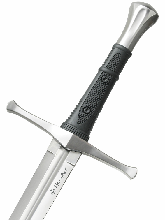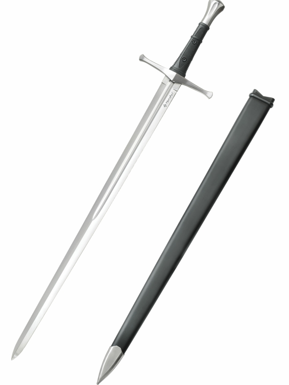 die eine partielle Blutrinne hat, die bis zum kräftigen traditionellen Handschutz führt.