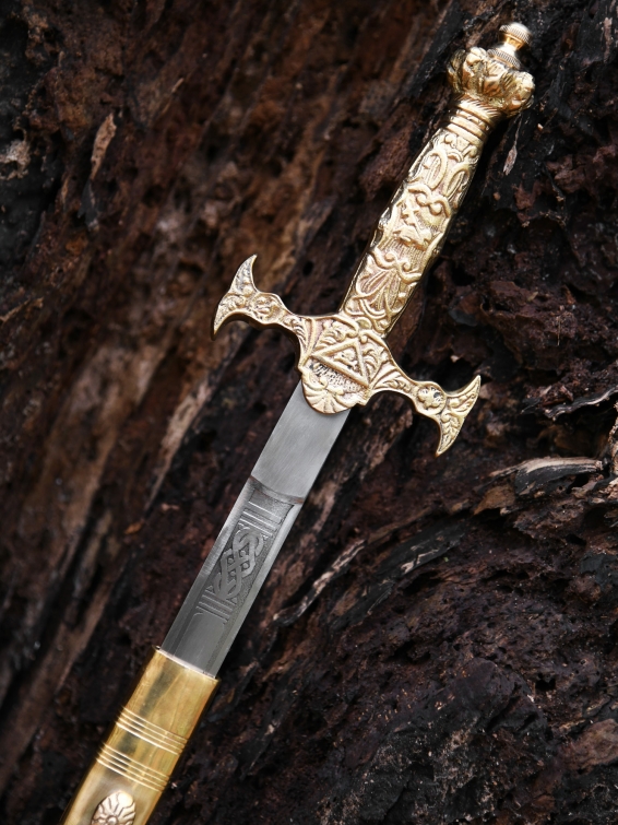 Dieses Freimaurerschwert hat eine sehr prunkvolle Griffpartie aus Messing