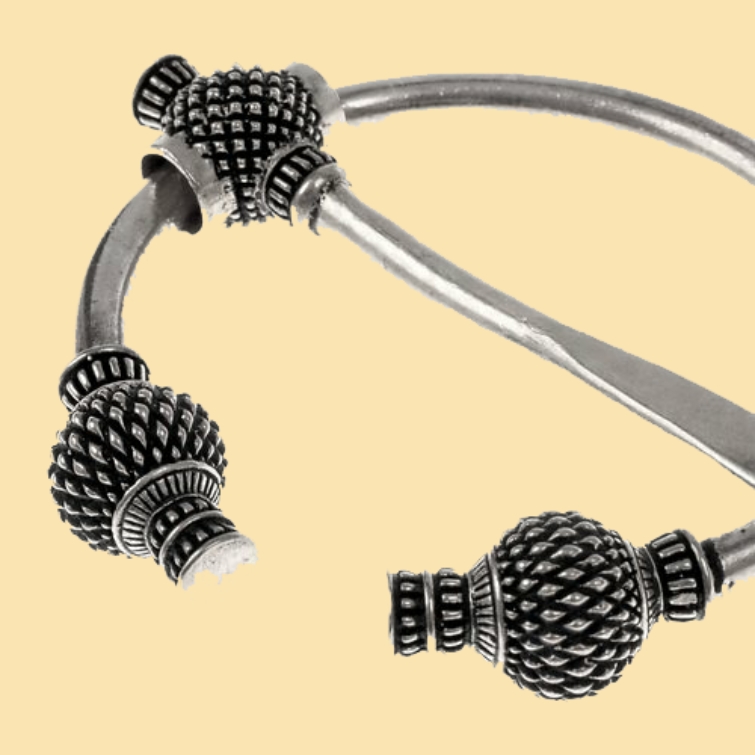 Fibeln mit den auffälligen distelförmigen Köpfen an Ring und Nadel