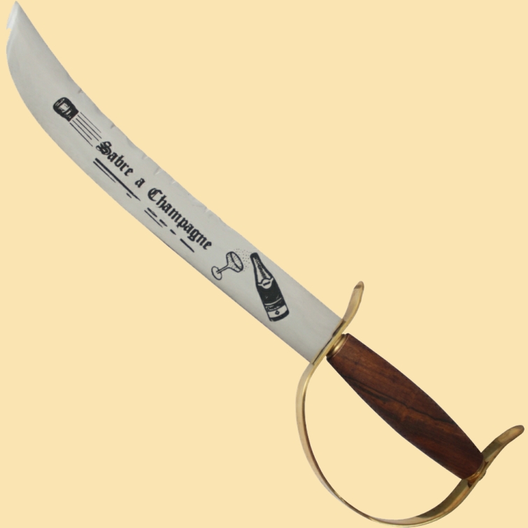 Einfacher Champagnersäbel, inklusive Dekorationsständer aus Holz.