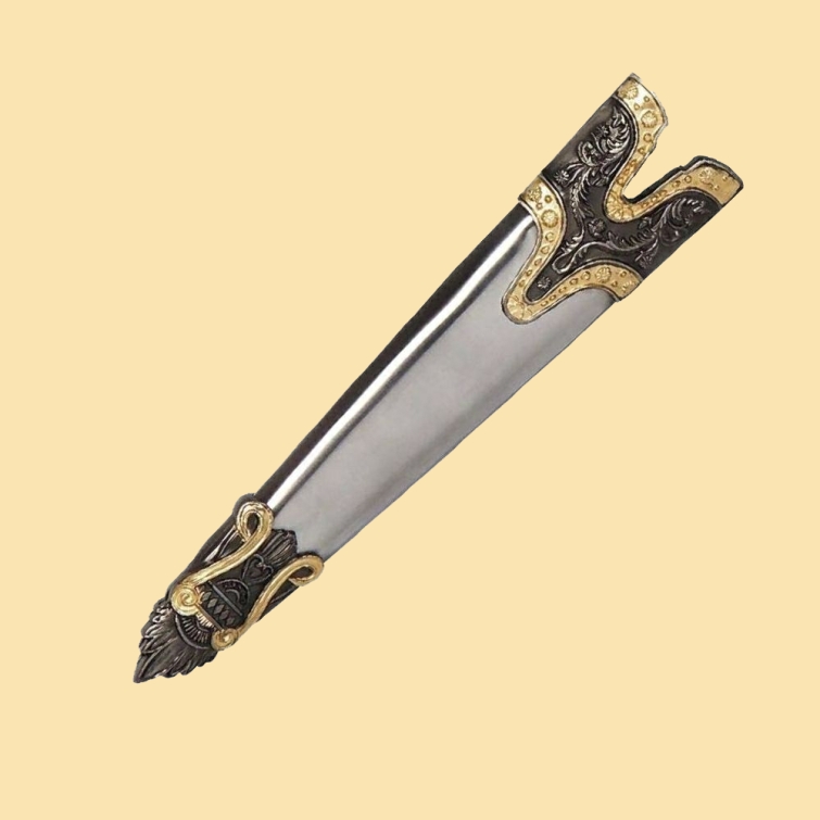 Reich verzierter Dolch mit klassisch griechischer Klingenform.