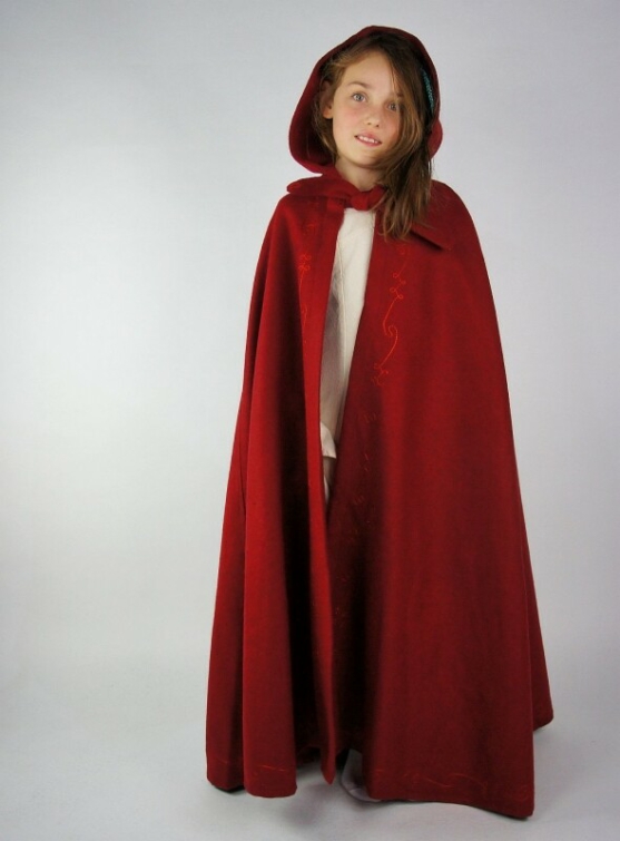 Kinderumhang aus Wolle mit handgenähter Stickerei - rot