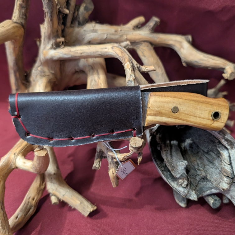 Die mitgelieferte, ebenfalls in Handarbeit, gefertigte Messerscheide, besteht aus Rindsleder.