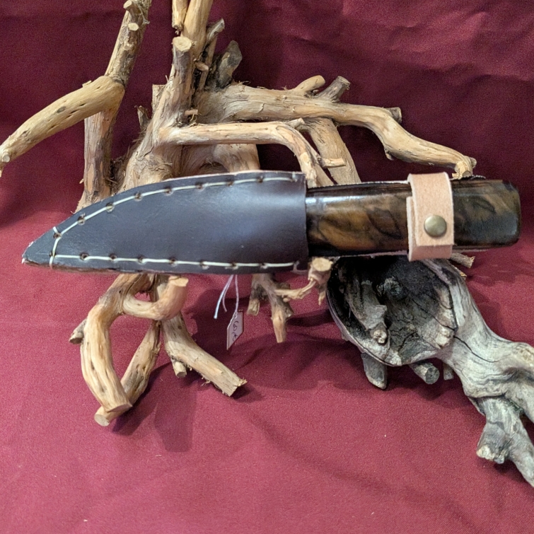 Die mitgelieferte, ebenfalls in Handarbeit, gefertigte Messerscheide, besteht aus Rindsleder.