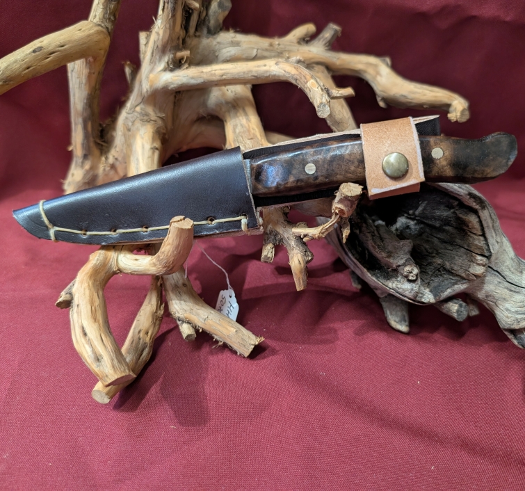 Die mitgelieferte, ebenfalls in Handarbeit, gefertigte Messerscheide, besteht aus Rindsleder.