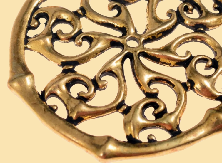 Der römische Anhänger zeigt ein sog. Peltenmotiv in filigraner und komplexer Durchbruchstechnik