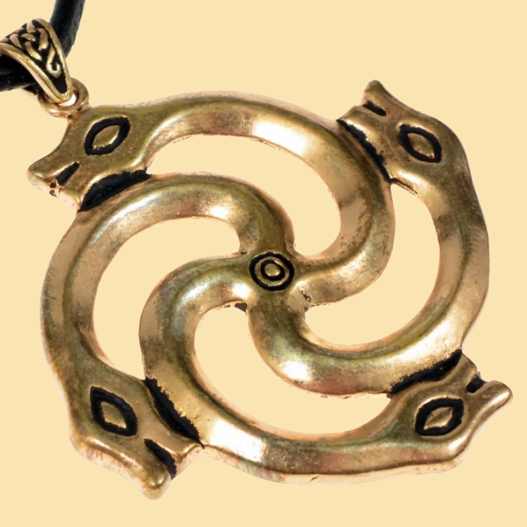 Der Schlangen-Anhänger hat die Form in Form eines Tetraskelions mit vier Schlangenköpfen.