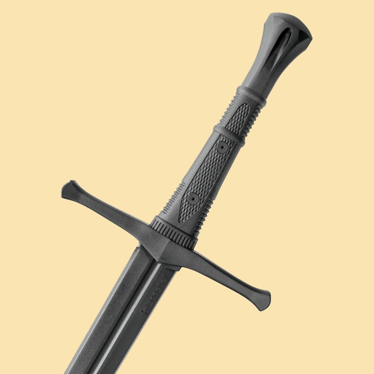 Es ist in Länge, Größe, Gewicht und Haptik einem echten mittelalterlichen Breitschwert nachempfunden