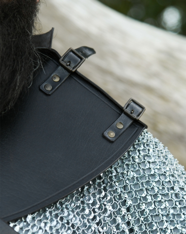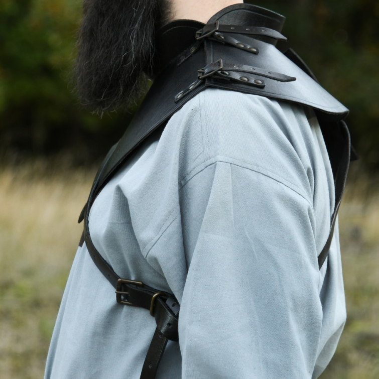 Zwei an jeder Seite angenietete Lederriemen mit Schnallen ermöglichen eine flexible Anpassung des Kragens,