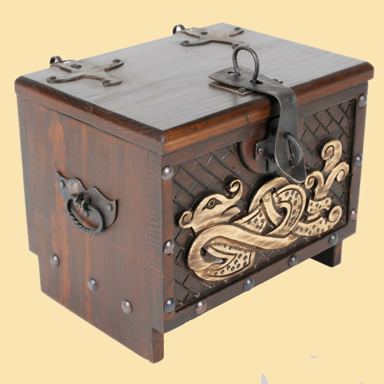 Kleine Wikinger-Kiste aus Holz mit Midgardschlangen-Motiv