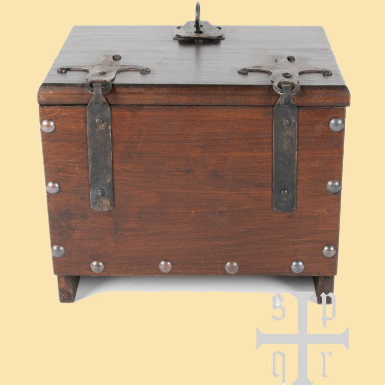 Die wikingerzeitliche Kiste ist aus Holz handgefertigt und mit Scharnieren und Seitengriffen aus Schmiedeeisen ausgestattet.