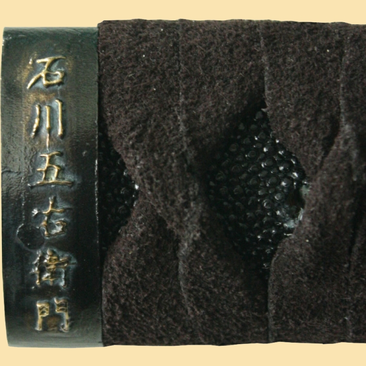 Neben weiteren Motiven findet sich auf dem Fuchi auch sein Name in japanischer Schrift.