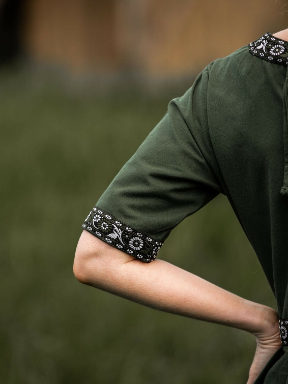 Edles Kurzarmkleid mit Bordüre "Ennlin" - grün