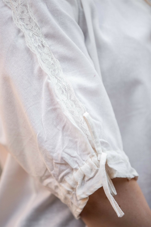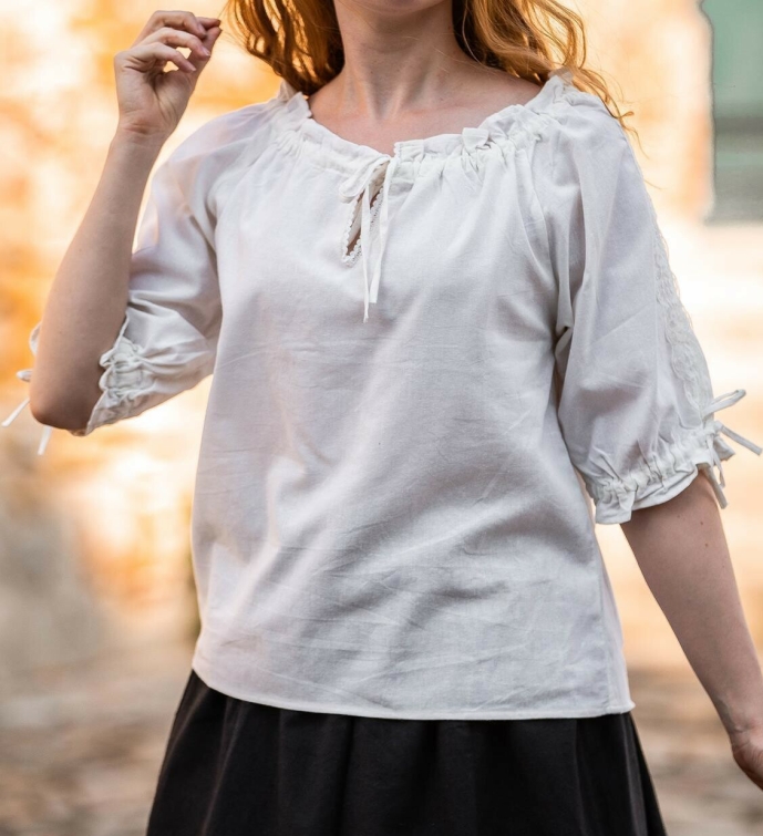 verzierender Gummizug an Schulter- und Dekolleté Bereich