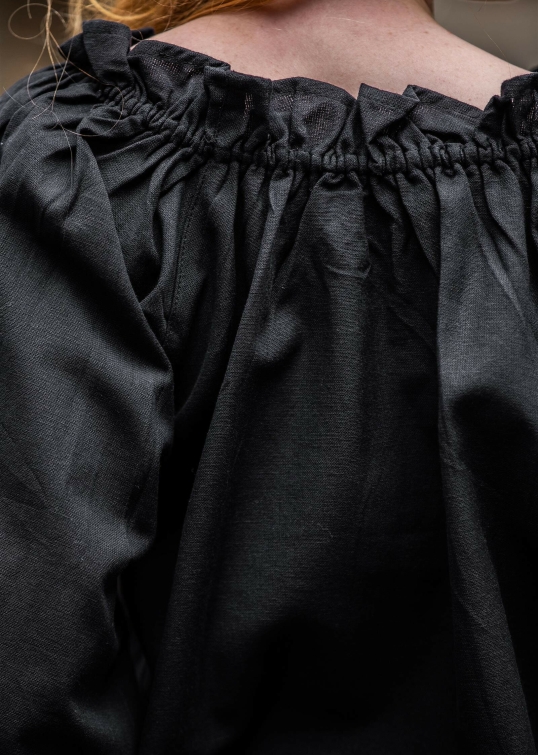 verzierender Gummizug an Schulter- und Dekolleté Bereich