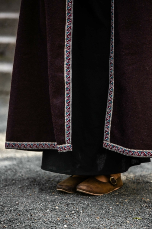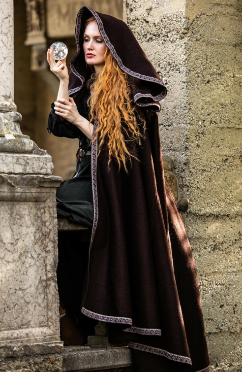 Umhang mit großer Kapuze und Bordüre