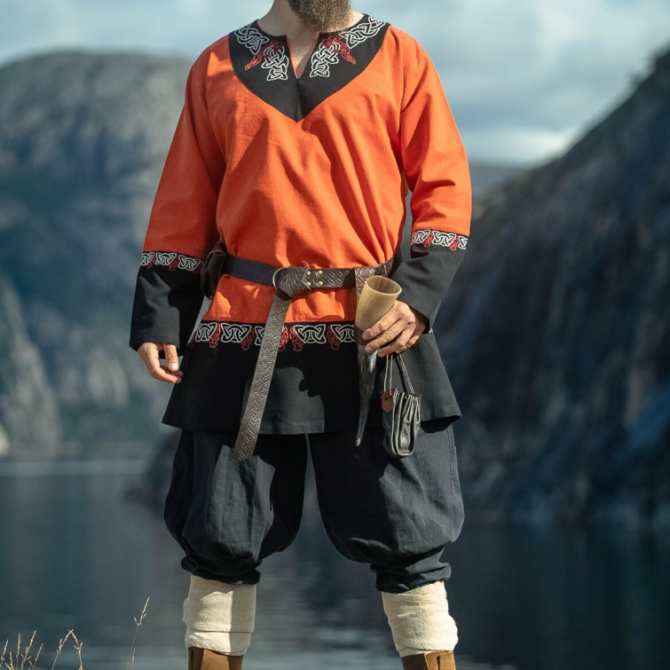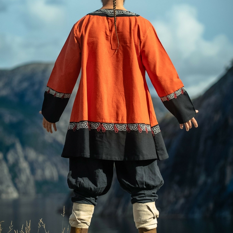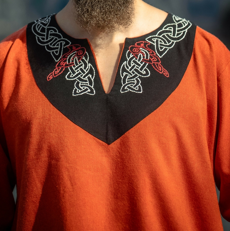 Aufwändige Stickereien betonen den V-Ausschnitt