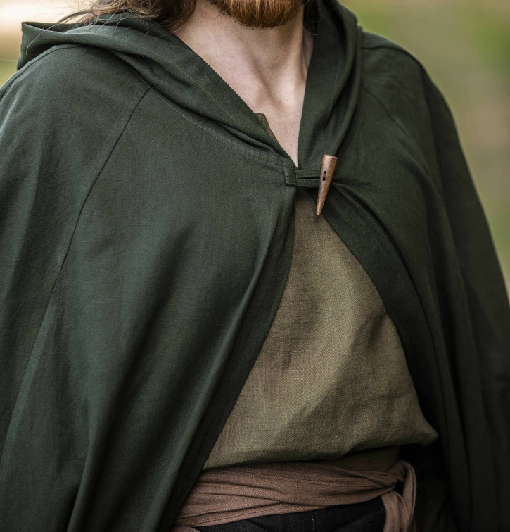 Dekorativer Knebelknopf aus Holz als Verschluss.