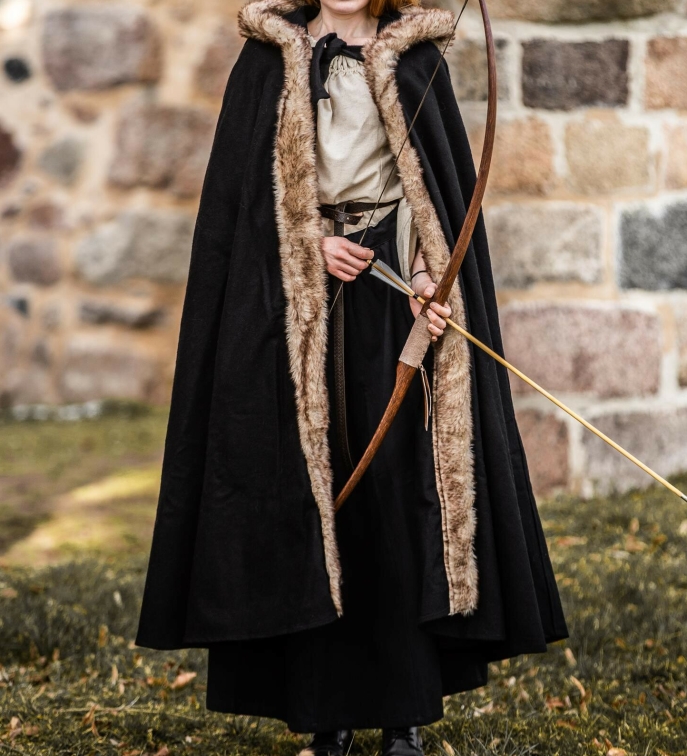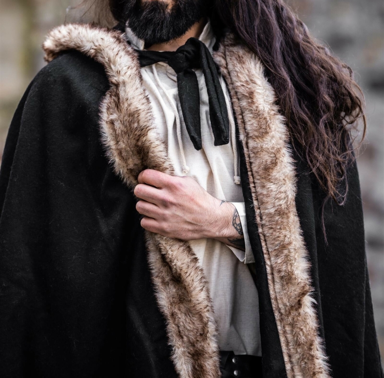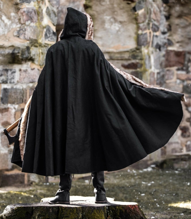 Wikinger Umhang "Fjell" mit Kunstfell - schwarz