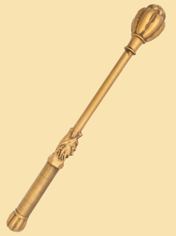 Das Griffstück endet in einem ebenfalls runden Knauf,