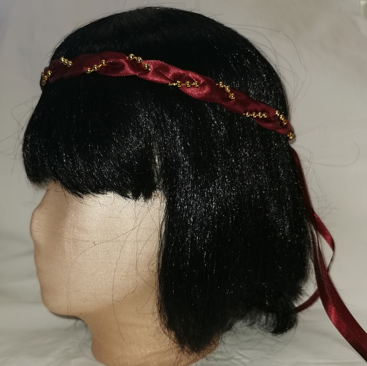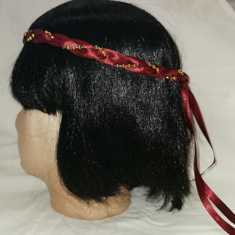 Aus Bändern geflochtener Kopfschmuck für die Dame.