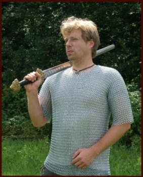 Kurzärmliges und kurzgeschnittenes, mittelalterliches Kettenhemd.